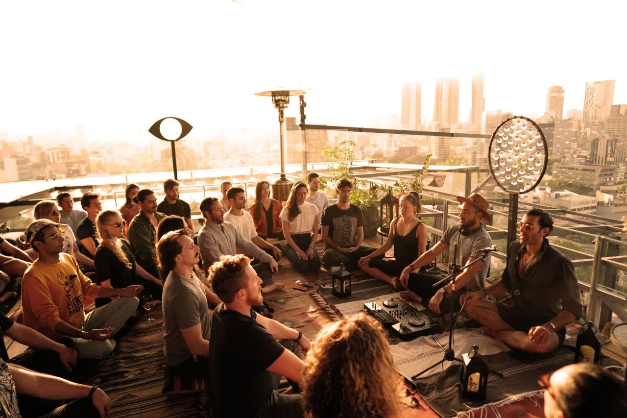 From guided breathwork sessions with bespoke electronic sounds, to dance therapy, from acupuncture yoga, to therapeutic light&sound journeys, from sunset sound meditations, to performative art exhibits, we made of this high end restaurant/bar and nightclub a cultural space.